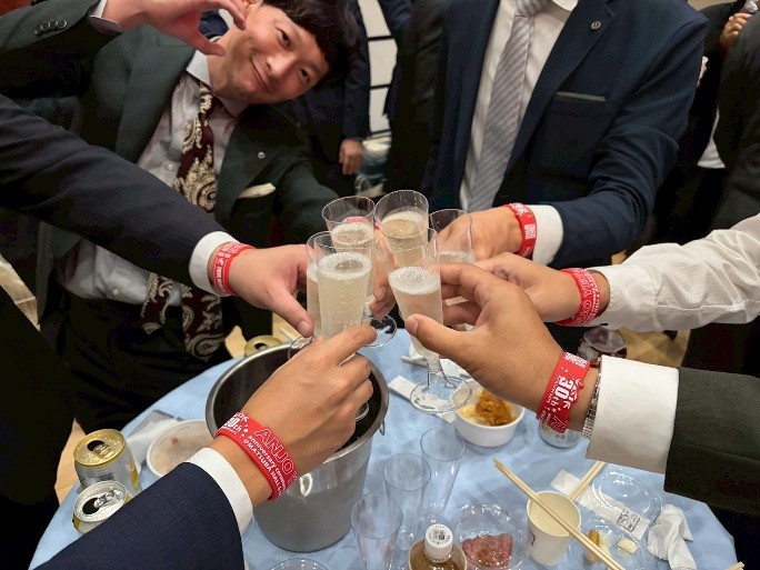 その後のアニバーサリーパーティーでは、雰囲気が一転し、カジュアルで和やかな時間を過ごさせていただきました。お揃いのブレスレットを身に着けての乾杯など、参加者同士の一体感を感じる演出も印象的でした。