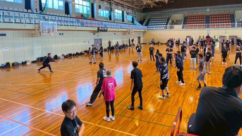 今回は、スポーツを通じた交流として「ドッヂビー」というスポンジ状のフリスビーで行なう競技が行われました。各単会の垣根を超えた男女混合のチーム編成だったので、初めは少しぎこちない雰囲気がありましたが、全員で声を掛け合い、助け合いながら試合をしていくうちに、チーム全員で自然とハイタッチしたり、試合結果を分析したりと、非常に活発な交流が行われました。試合後半には、コート内のフリスビーが2個になるという斬新なルールも相乗効果を生み、試合も大盛り上がりでした。