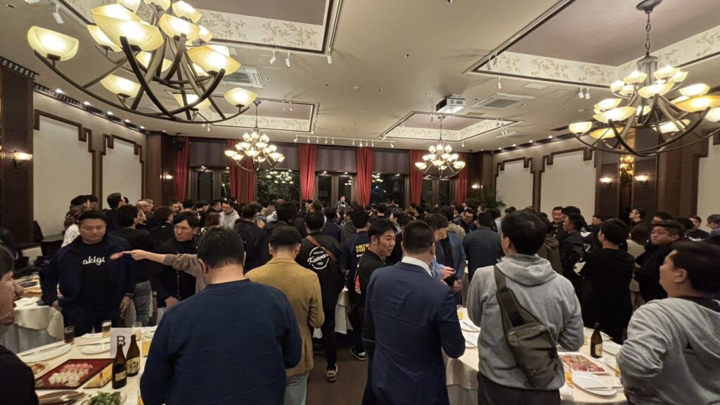 ドッヂビー終了後は会場を移して、同市にあるTHE FUNATSUYAにて懇親会が行われました。テーブルが激戦を共にしたチーム毎に分けられており、名刺交換や、自社業についての意見交換が盛んに行われていました。そして、ドッヂビーの優勝と準優勝と3位のチームには、開催地である桑名の名産品が送られ、更に思い出深いものとなりました。2月には県連大会という大きな事業も開催されます。そのために三重県内のYEGが一丸となって活動していく機運が更に高まっていくのを肌で感じる1日でした。