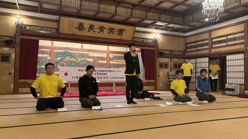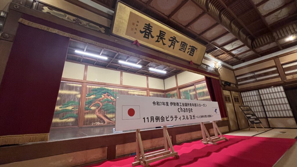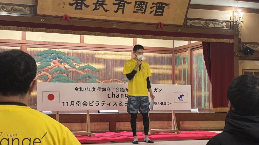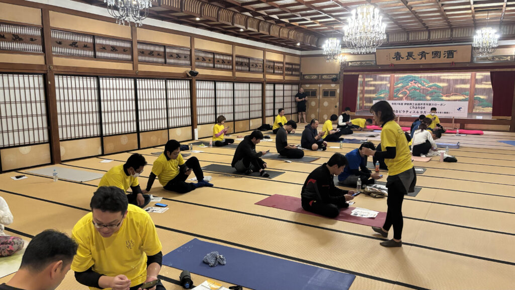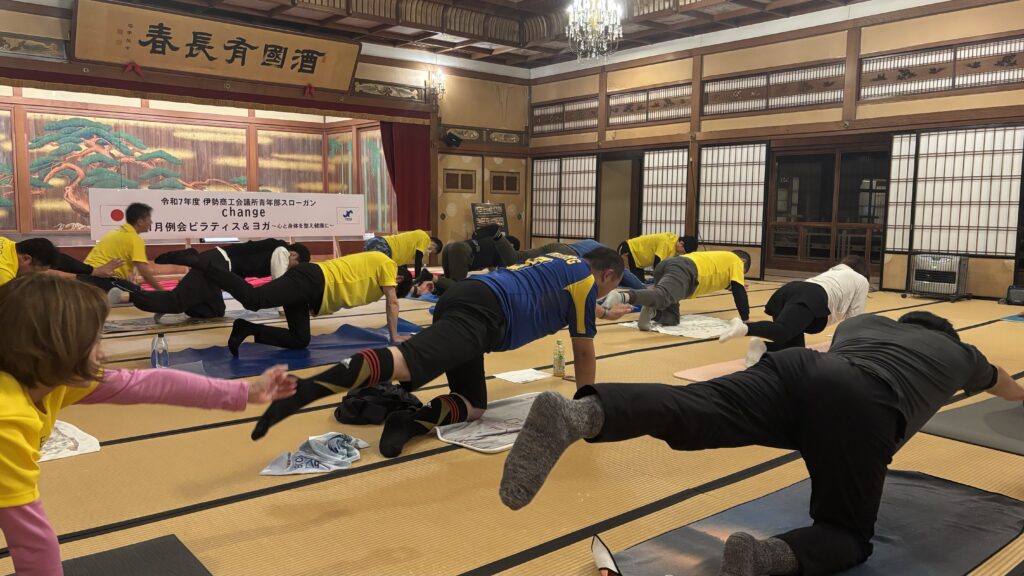 この度、伊勢市二見町にある国指定重要文化財の賓日館の大広間にて、伊勢商工会議所青年部 11月例会 ピラティス&ヨガ ~心と身体を整え健康に~が開催されました。
