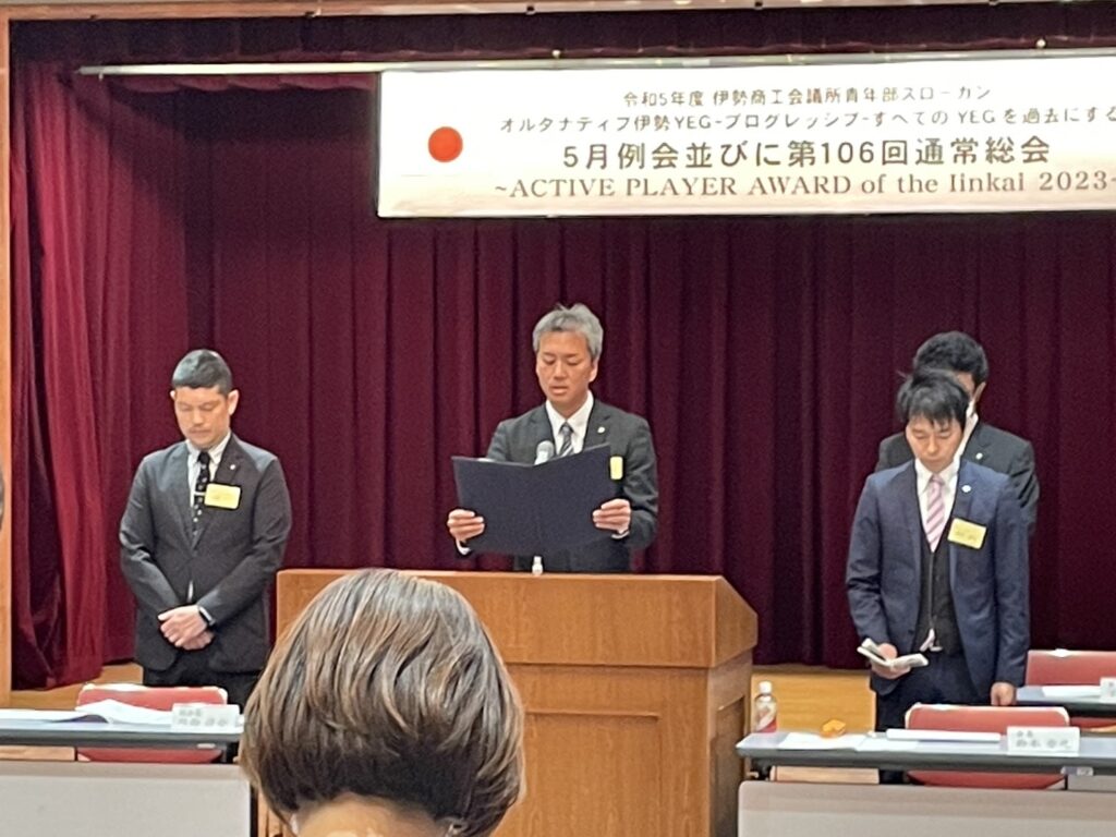 伊勢商工会議所5階大ホールにて、5月例会並びに第106回通常総会を開催しました。