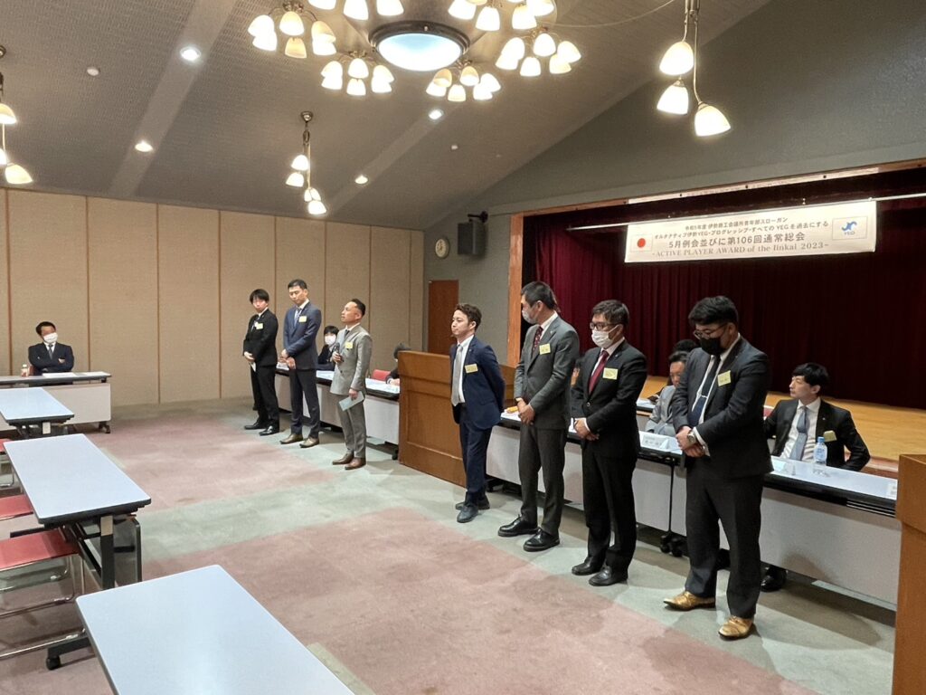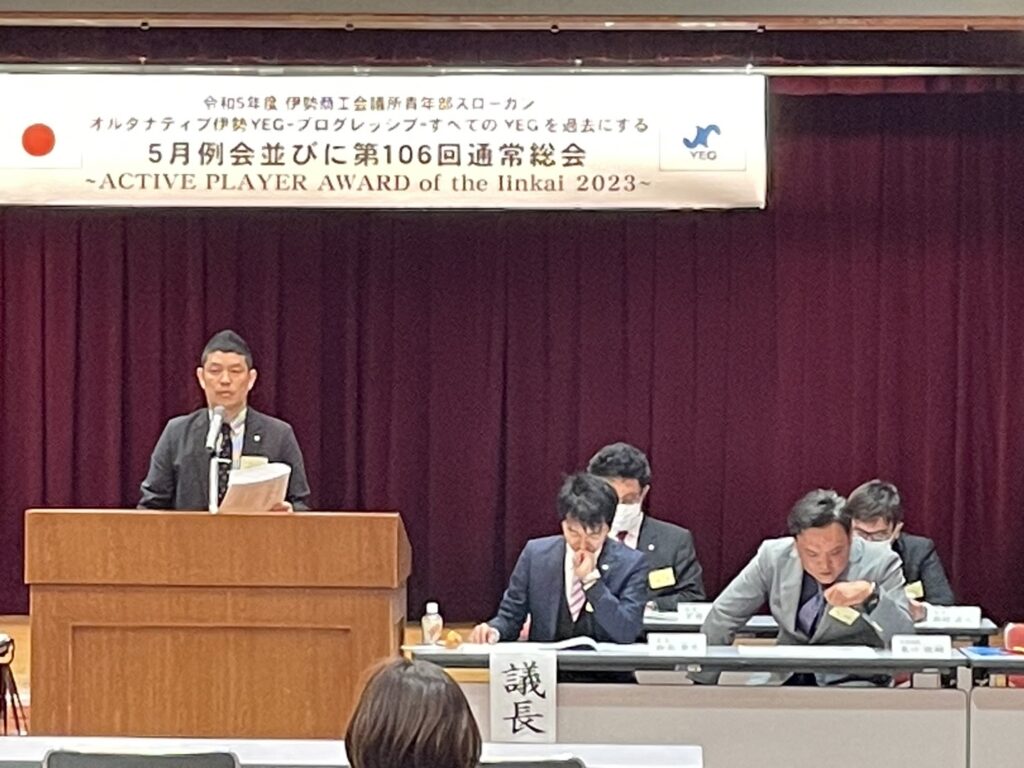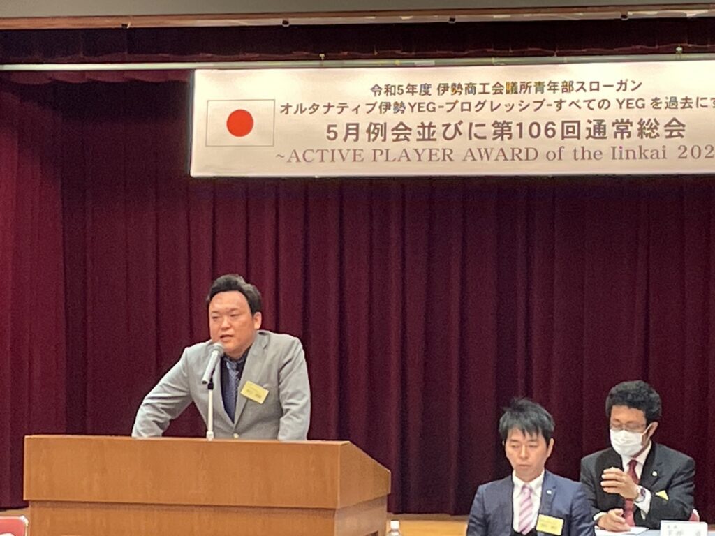 伊勢商工会議所5階大ホールにて、5月例会並びに第106回通常総会を開催しました。