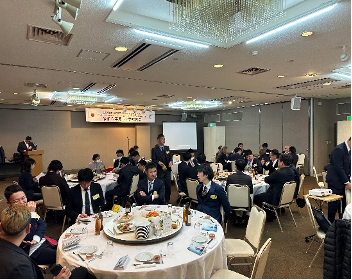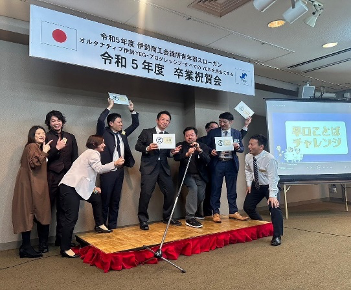 会場を移し卒業祝賀会では入会当時の歴代会長からの心温まるビデオメッセージを始め名作『ドリフの早口言葉』を模したアトラクションを開催し現役メンバー、卒業会員、