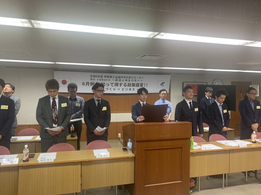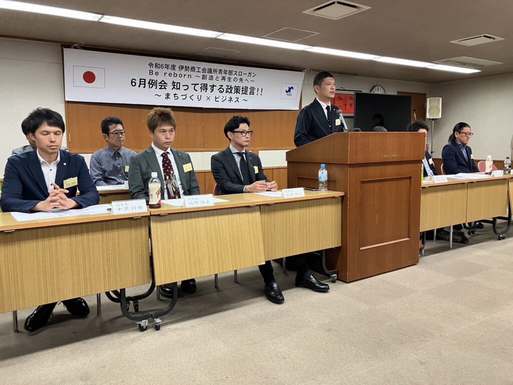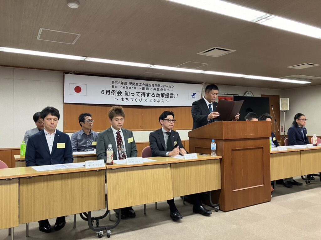 伊勢商工会議所4階中ホールにて、6月例会「知って得する政策提言‼~まちづくり×ビジネス~」を開催しました。