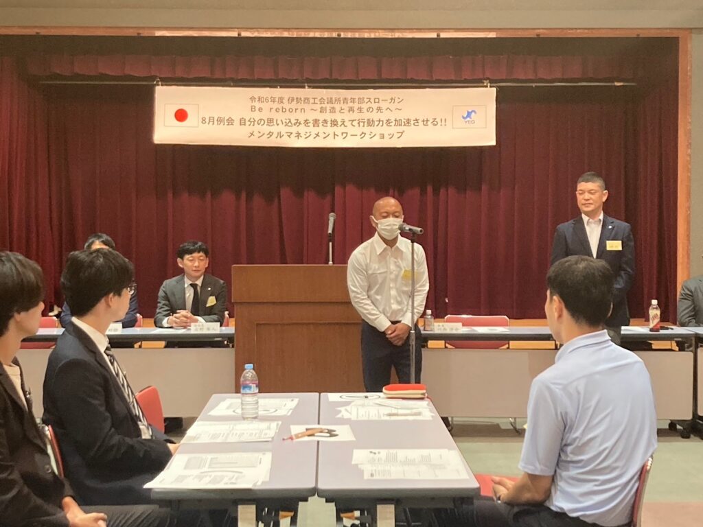 伊勢商工会議所5F大ホールにて、8月例会が開催されました。