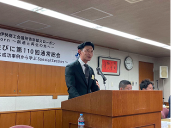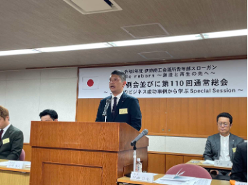 伊勢商工会議所4階中ホールにて、「9月例会並びに第110回通常総会」が開催されました。本総会では、次年度の会長を含む新リーダー陣が選出されました。また委員会タイムでは、今年度掲げるビジネス活性化のビジョンの元、伊勢YEGメンバー間で取引に至った2名の学びが共有され、下半期の飛躍に向けた新たな一歩が踏み出されました。続くPRタイムでは、各事業所の最新の取り組みも発表されました。