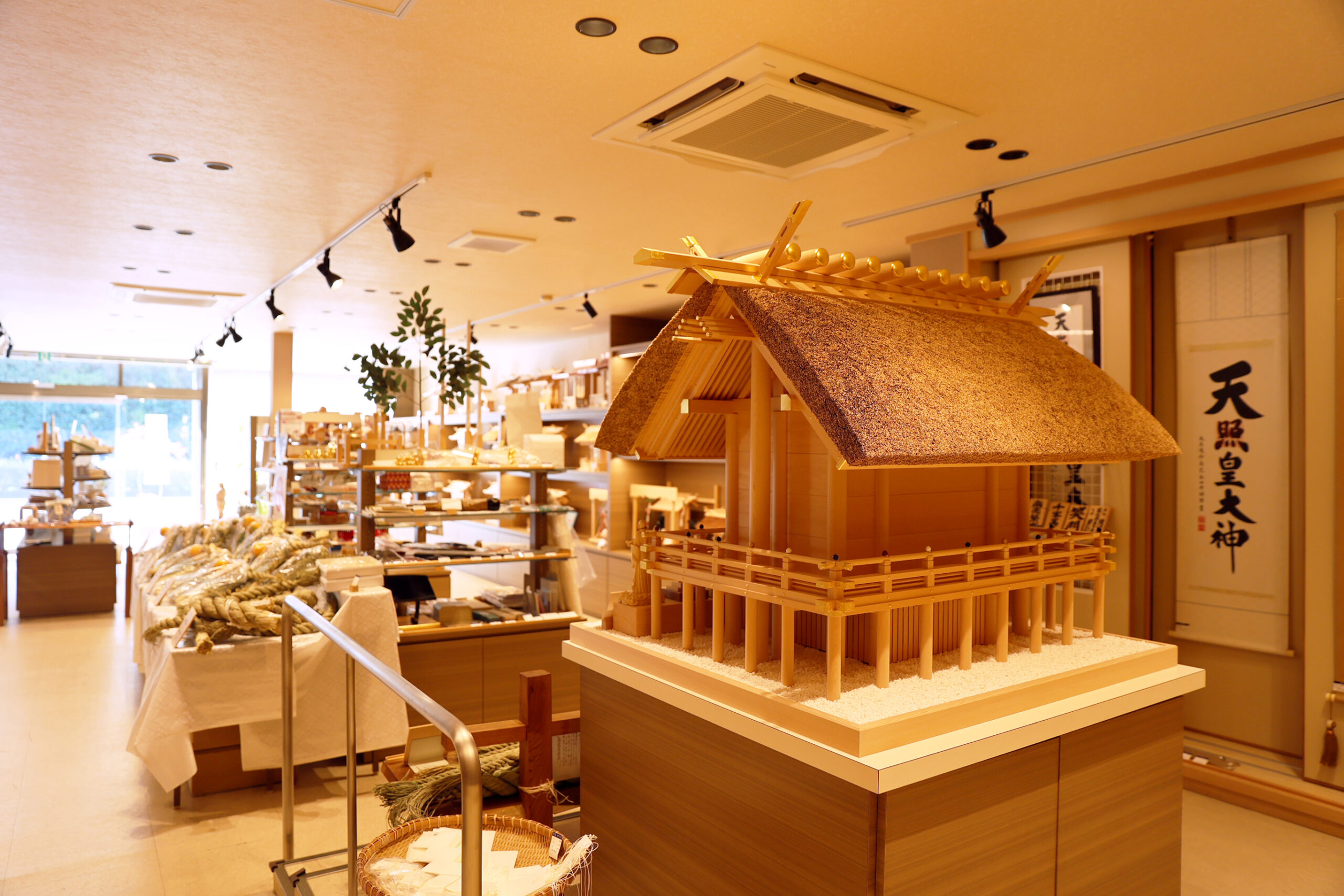 伊勢 宮忠の神棚は「伊勢の神殿」として三重県指定伝統工芸品、および伊勢ブランドに認定されています。伊勢神宮御用材としても使われる、樹齢百五十年から三百年にも成る天然の木曽桧で造られた美しい神棚です。